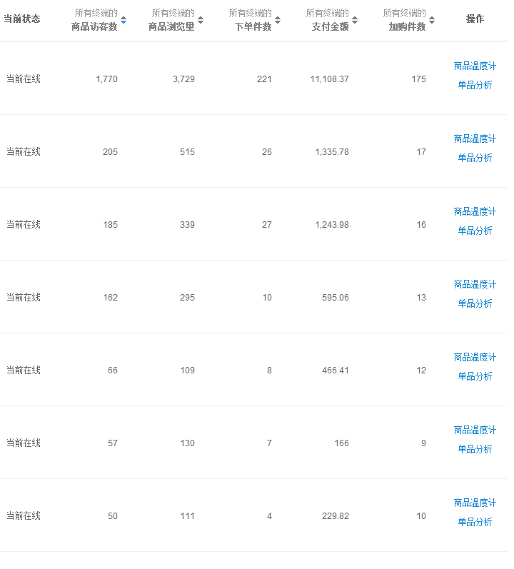 在“商品效果”中,我们主要分析“商品访客数”及“商品浏览量”,建议借助Excel表格进行分析。